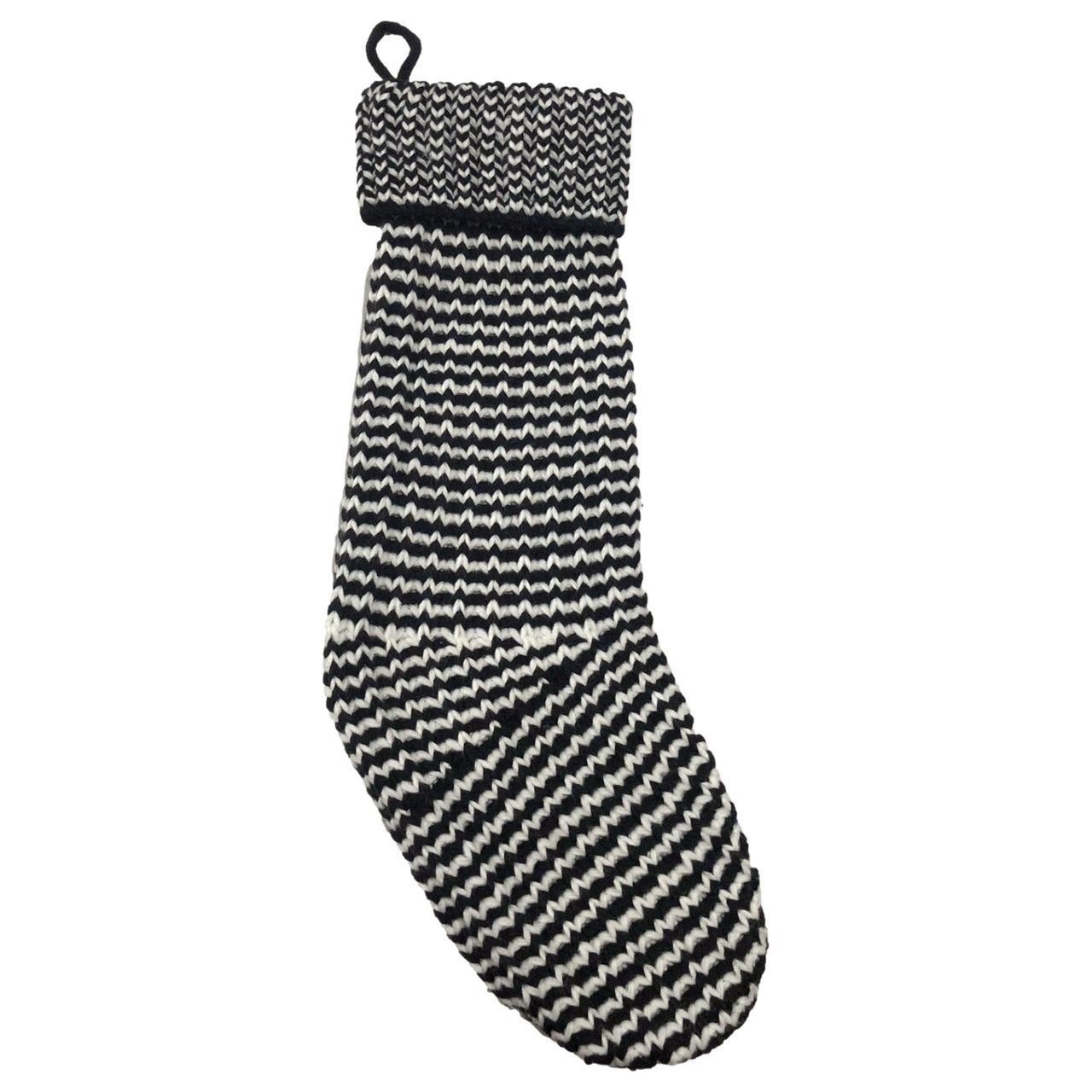 - Holidays Black & White Knit Zig Zag Houdstooth Christmas Stocking