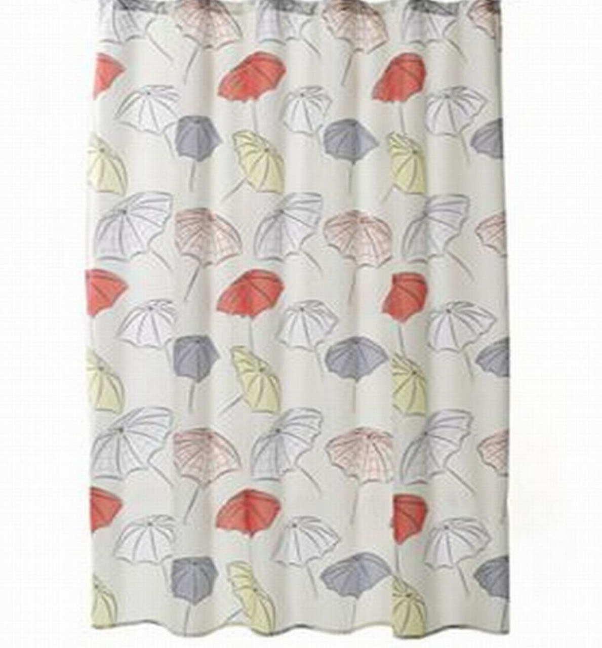 This Home Classics umbrellas fabric shower curtain has a great look. It has a pretty pattern of colorful umbrellas on an ivory background