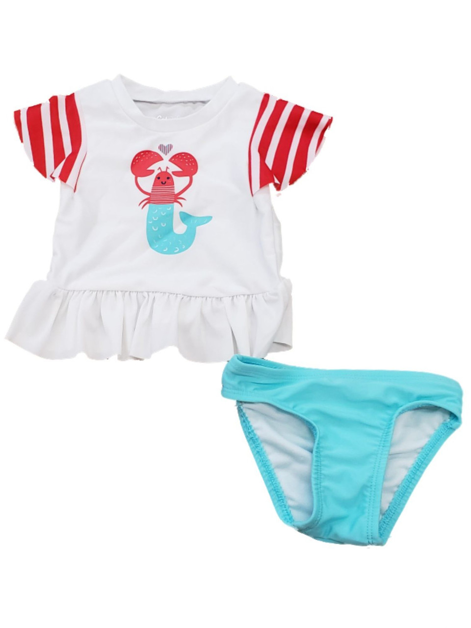 - Infant and Toddler Girls Mermaid Lobster Heart White 2 Pc Swimming Swim Suit