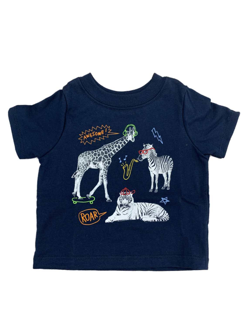- Infant & Baby Boys Blue Zoo Animals T-Shirt Giraffe Zebra & Tiger Shirt