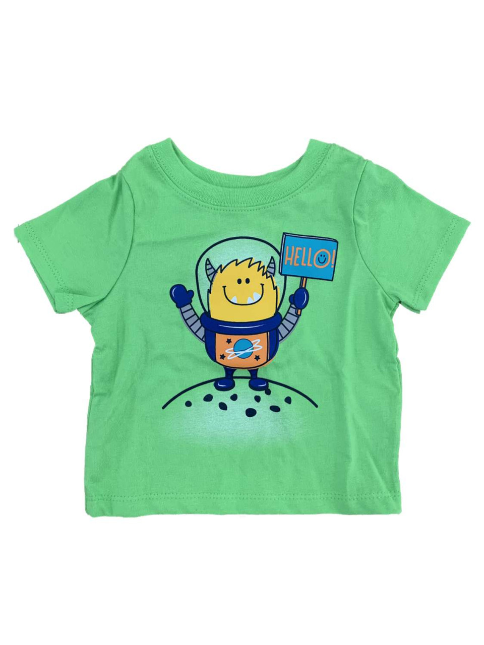 - Infant & Baby Boys Green Hello Alien T-Shirt Short Sleeve Shirt