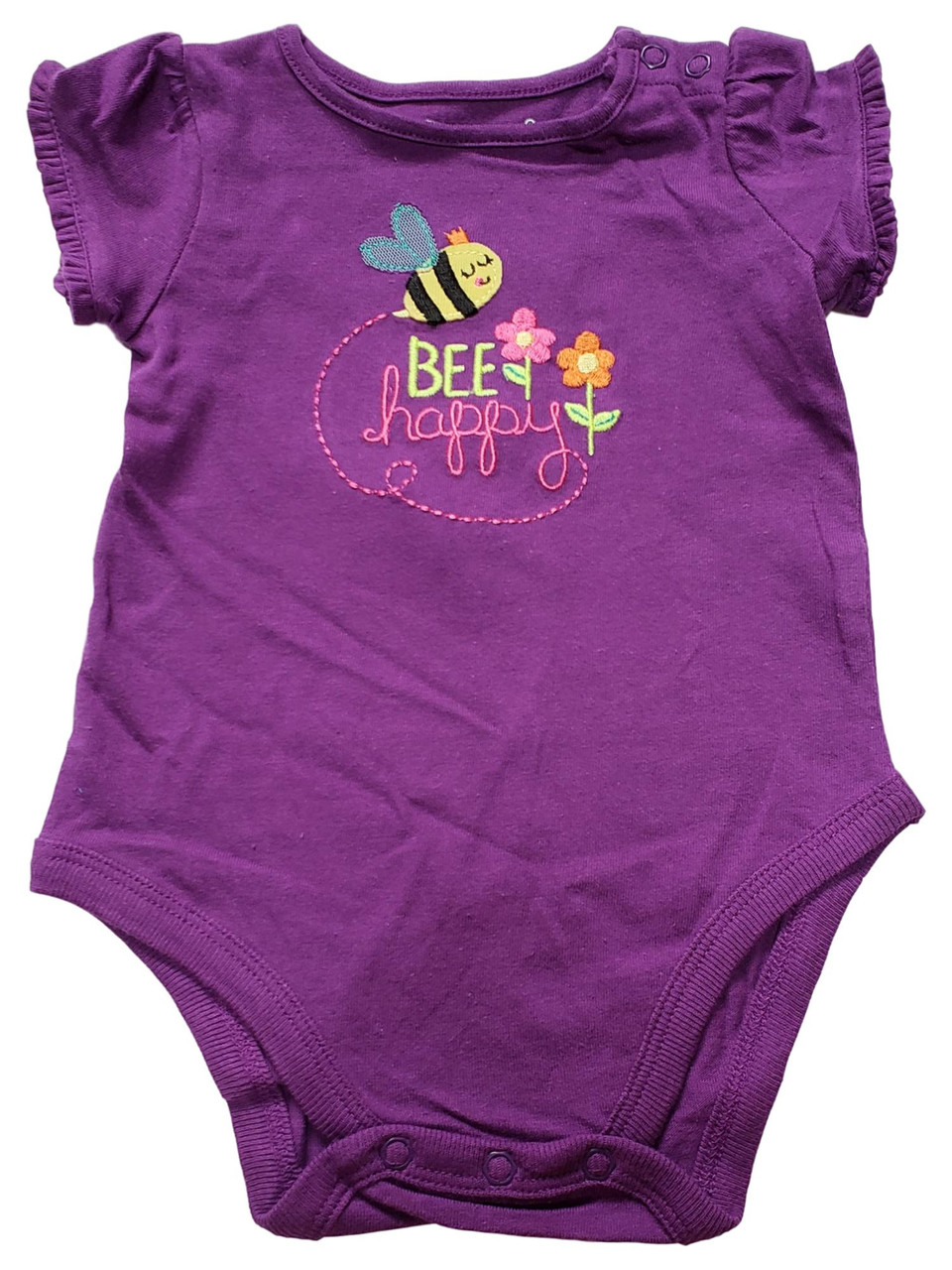 - Infant Baby Girls Deep Purple Bee Happy Flower Cotton Romper Bodysuit
