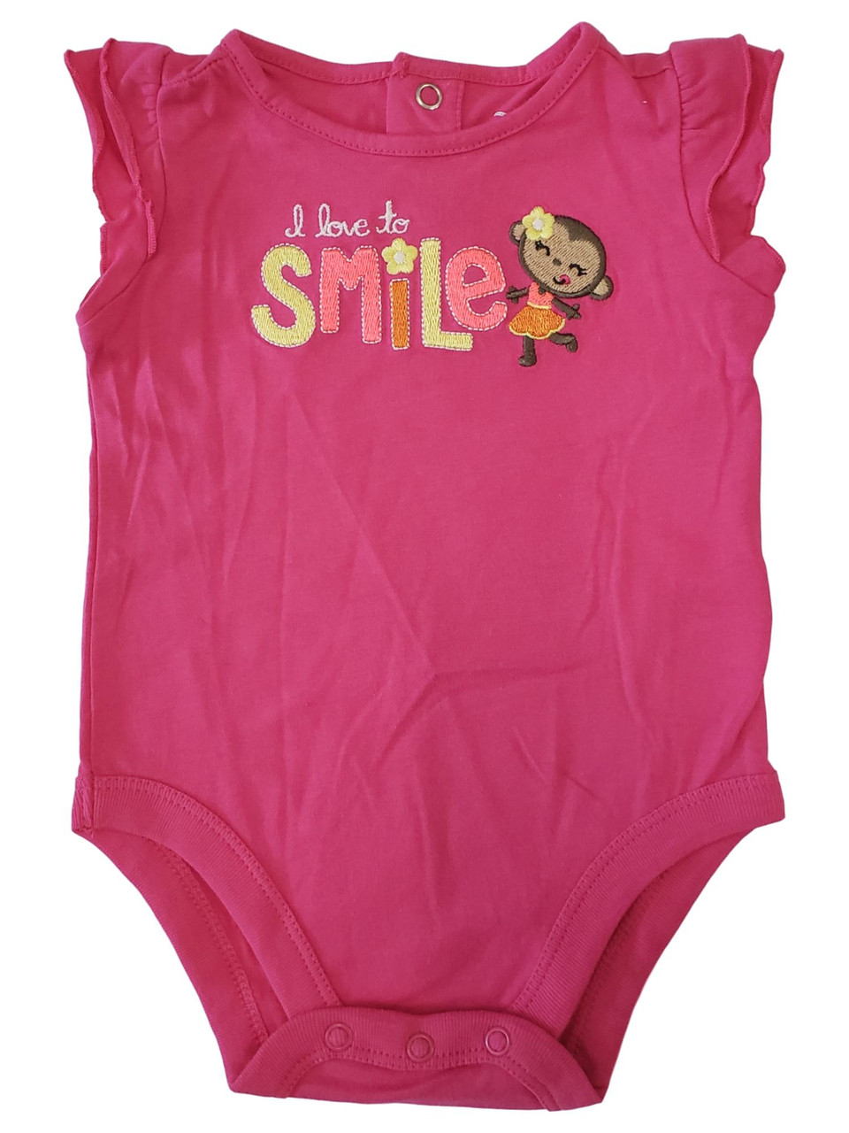 - Infant Baby Girls Pink I Love To Smile Monkey Flower Cotton Romper Bodysuit