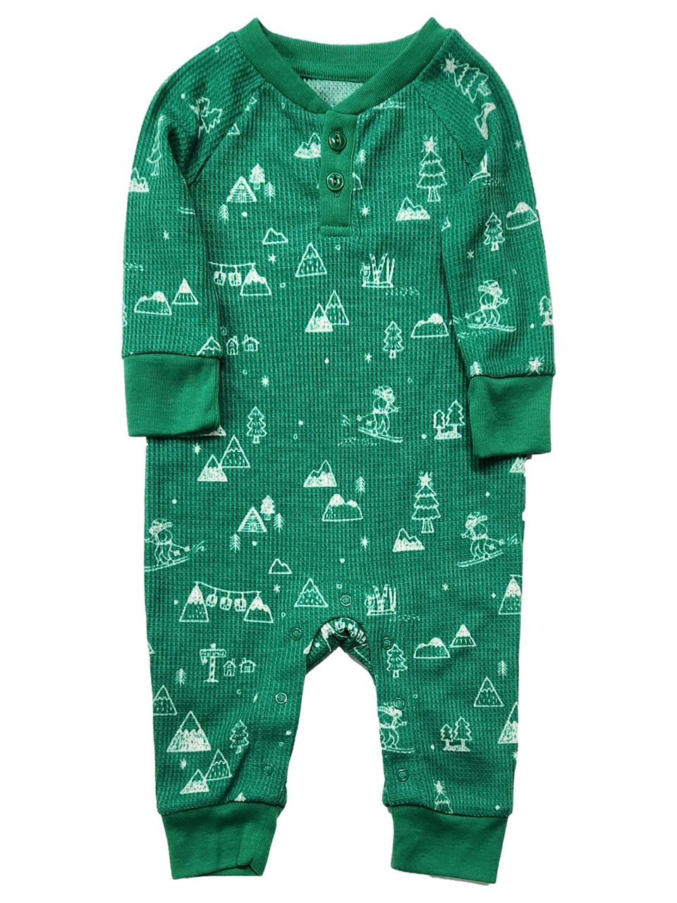 - Infant Baby Green Mountain & Tree Thermal Polyester Long Sleeve Romper