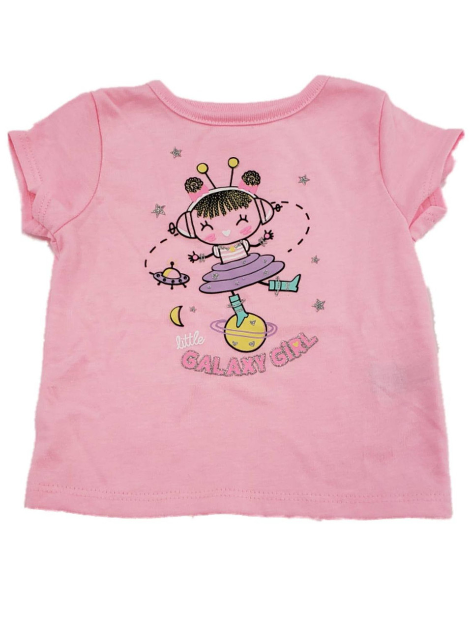 - Infant Baby Little Galaxy Girl Pink Glitter Sparkle Stars Planet Tee T Shirt