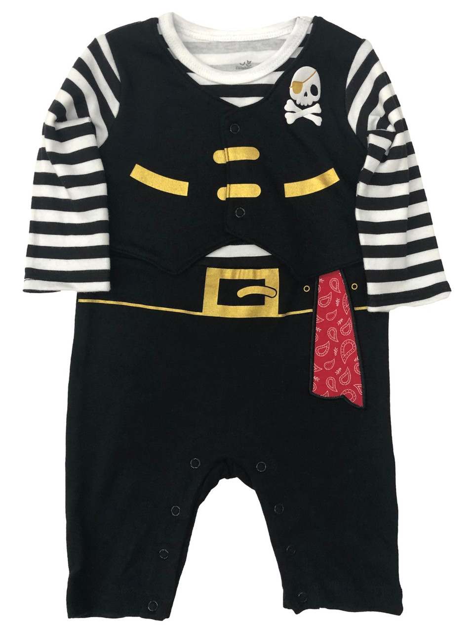 - Infant Boy Halloween Baby Outfit Black Skull Pirate Jumper Coverall