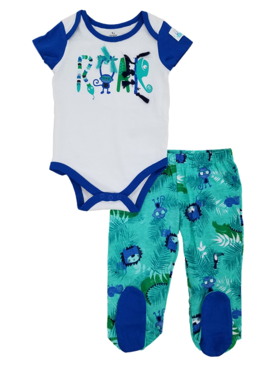 - Infant Boys 2-Piece Baby Jungle Animals Roar Bodysuit & Footed Pants Set