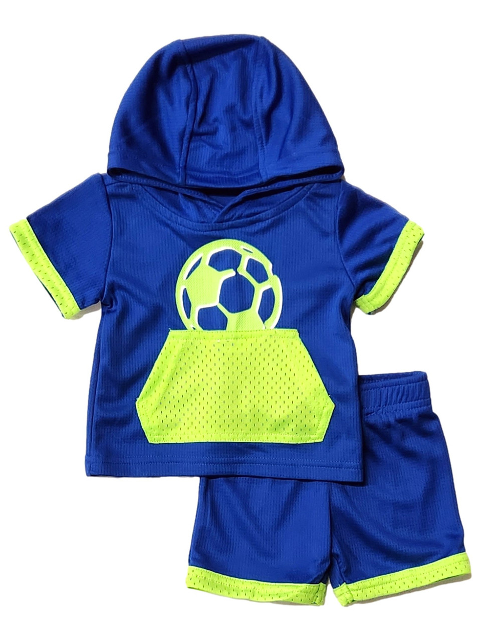 - Infant Boys 2 Piece Blue & Green Soccer Athletic Shirt & Shorts Set 3-6m