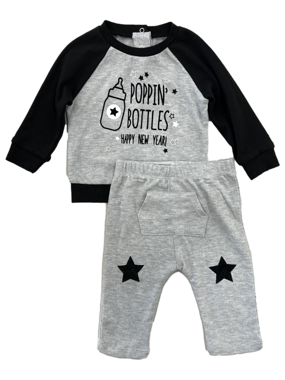 - Infant Boys 2-Piece Poppin Bottles Happy New Year Black & Gray Outfit