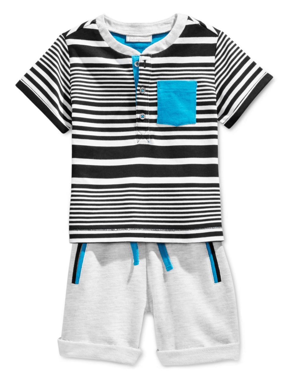 - Infant Boys 2 Piece Striped Henley T-Shirt & Short Set