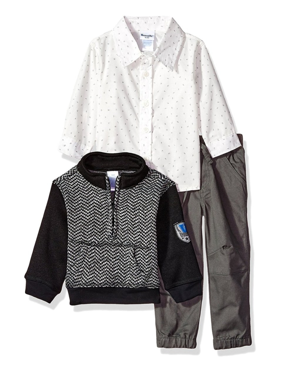 - Infant Boys 3-Piece Black Sweater Woven Shirt & Pant Set