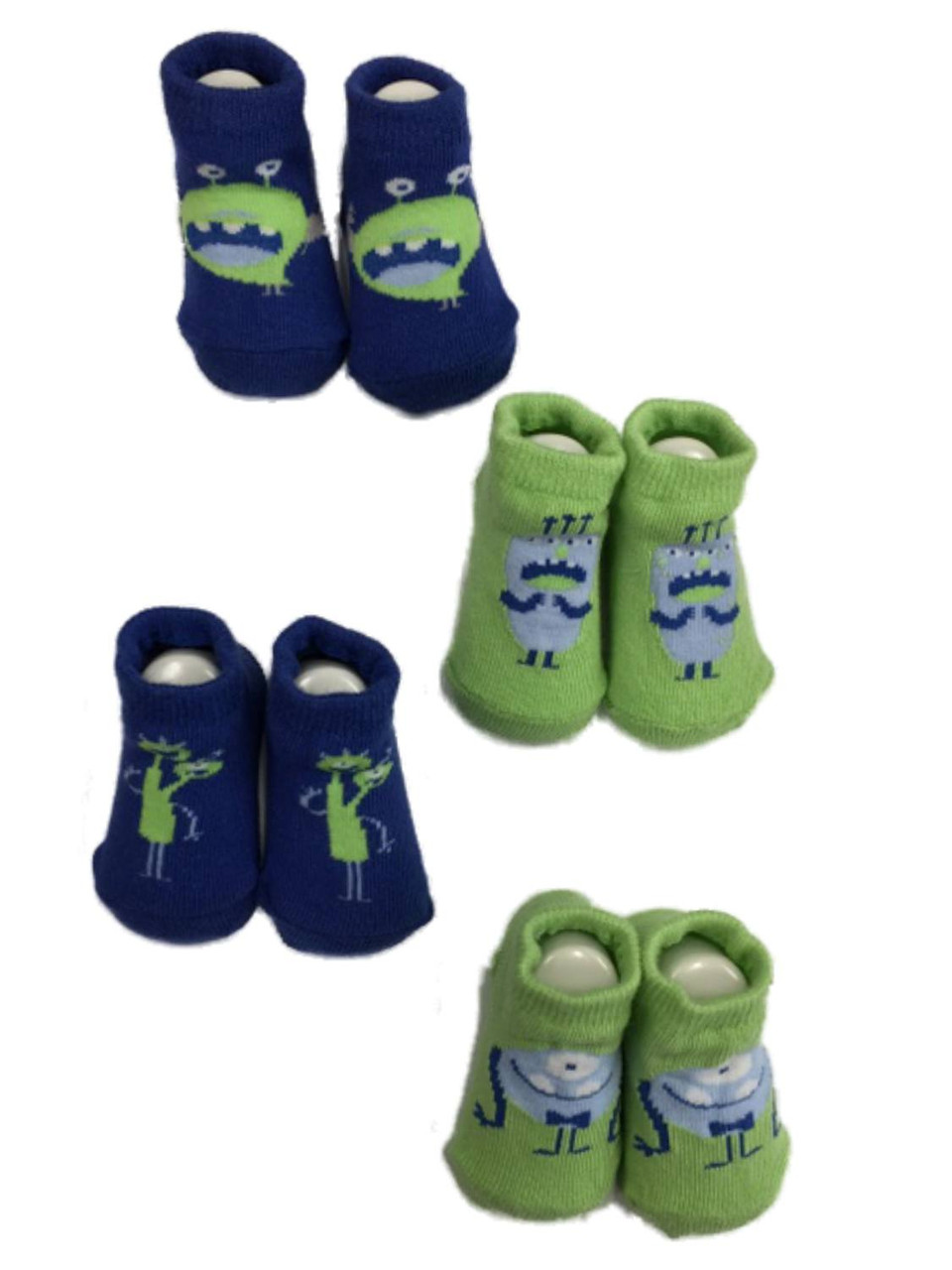 - Infant Boys 4 Pair Blue & Green Monster Baby Bootie Socks 0-6 Months