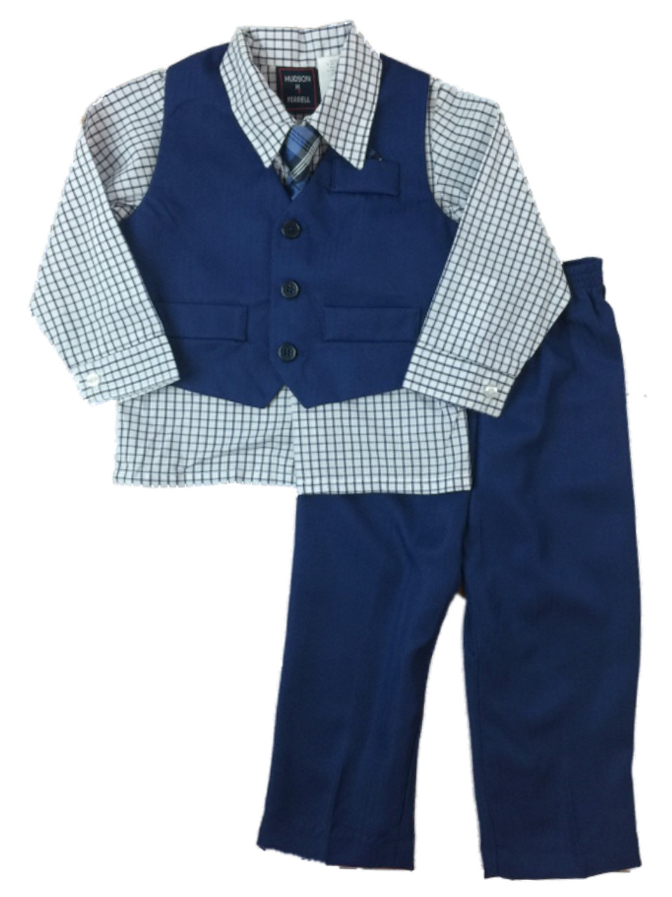 - Infant Boys 4 Piece Navy Blue & White Suit Dress Up Outfit With Tie & Vest 24m