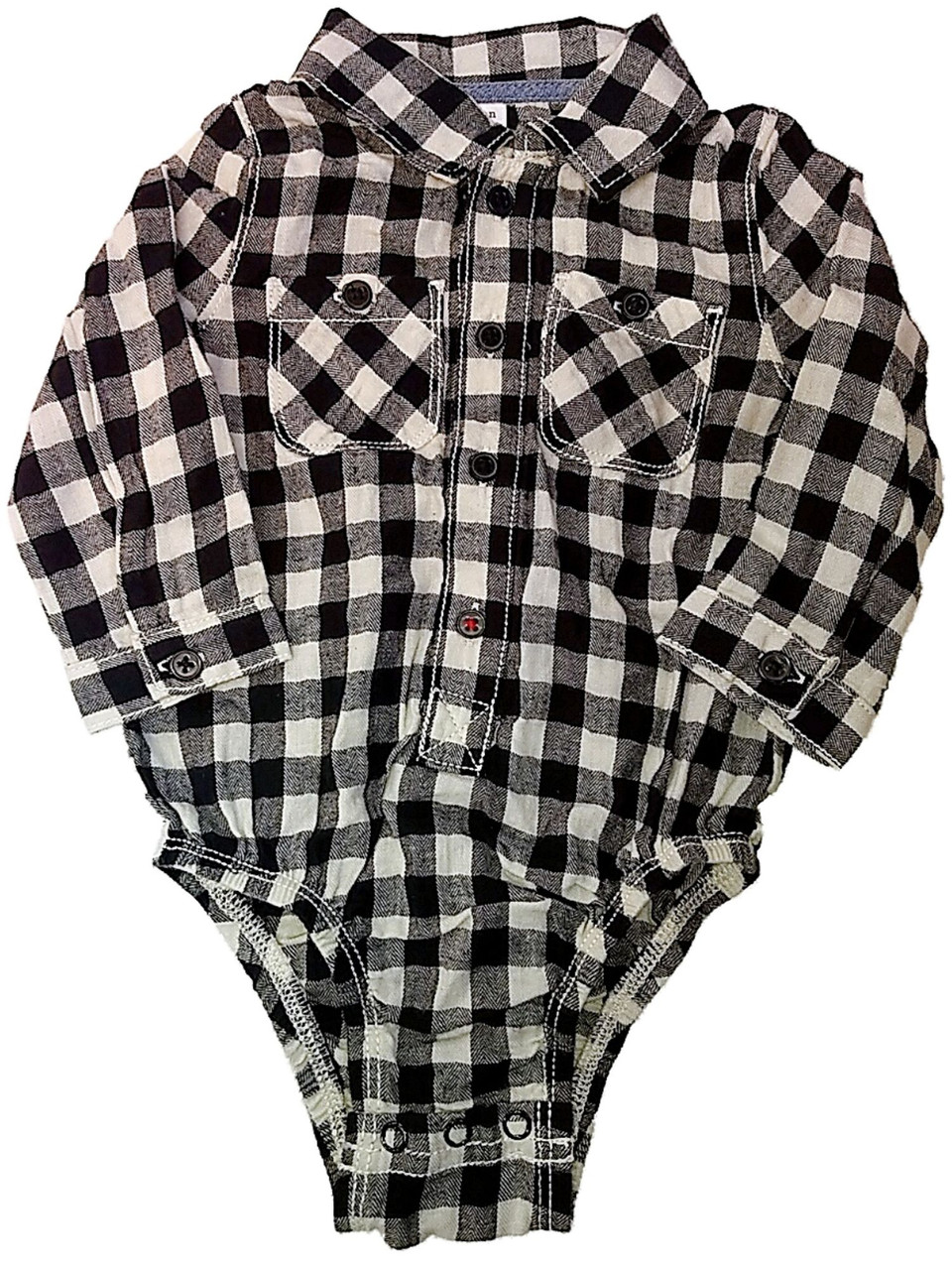 - Infant Boys Black & Cream Plaid Long Sleeve Bodysuit Cotton Baby Creeper