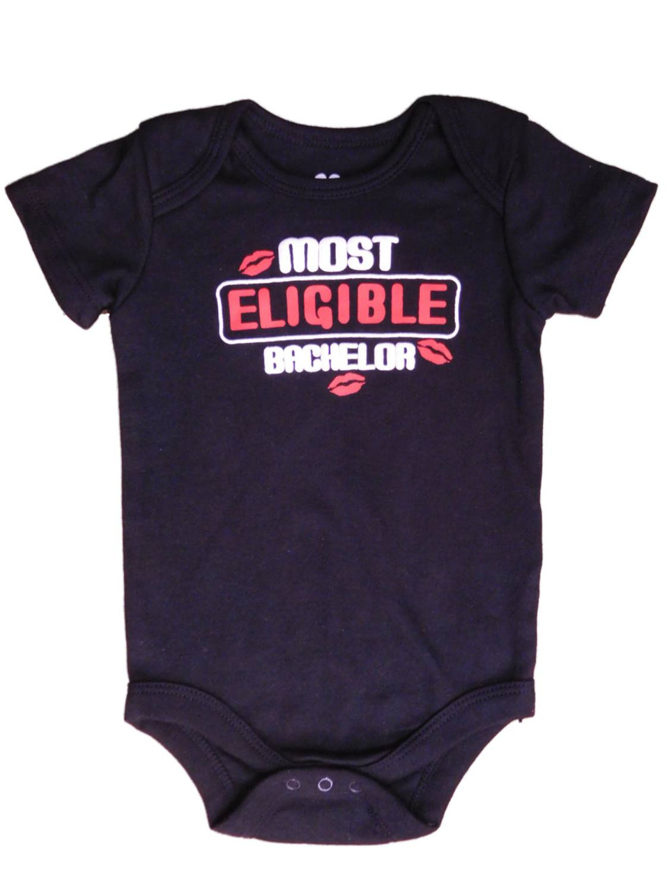 - Infant Boys Black Most Eligible Bachelor Valentines Day Creeper Bodysuit