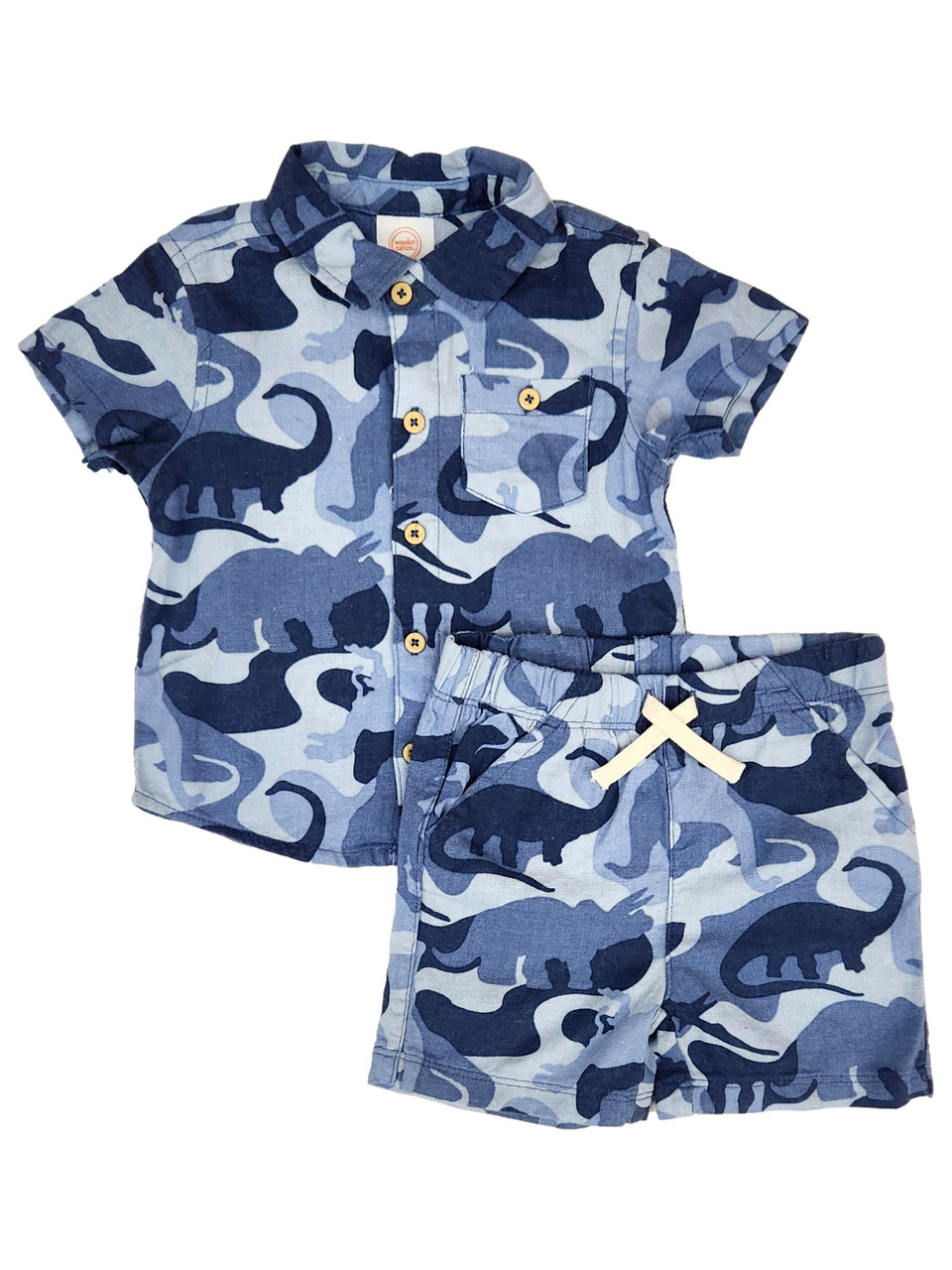 - Infant Boys Blue Camo Dinosaur Shirt & Shorts Lounge Wear Outfit Set