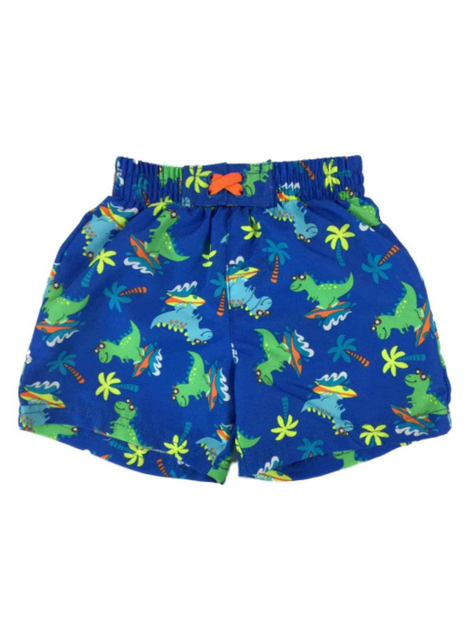 - Infant Boys Blue Surfing Dinosaur & Palm Tree Swim Trunks Baby Board Shorts 3-6m