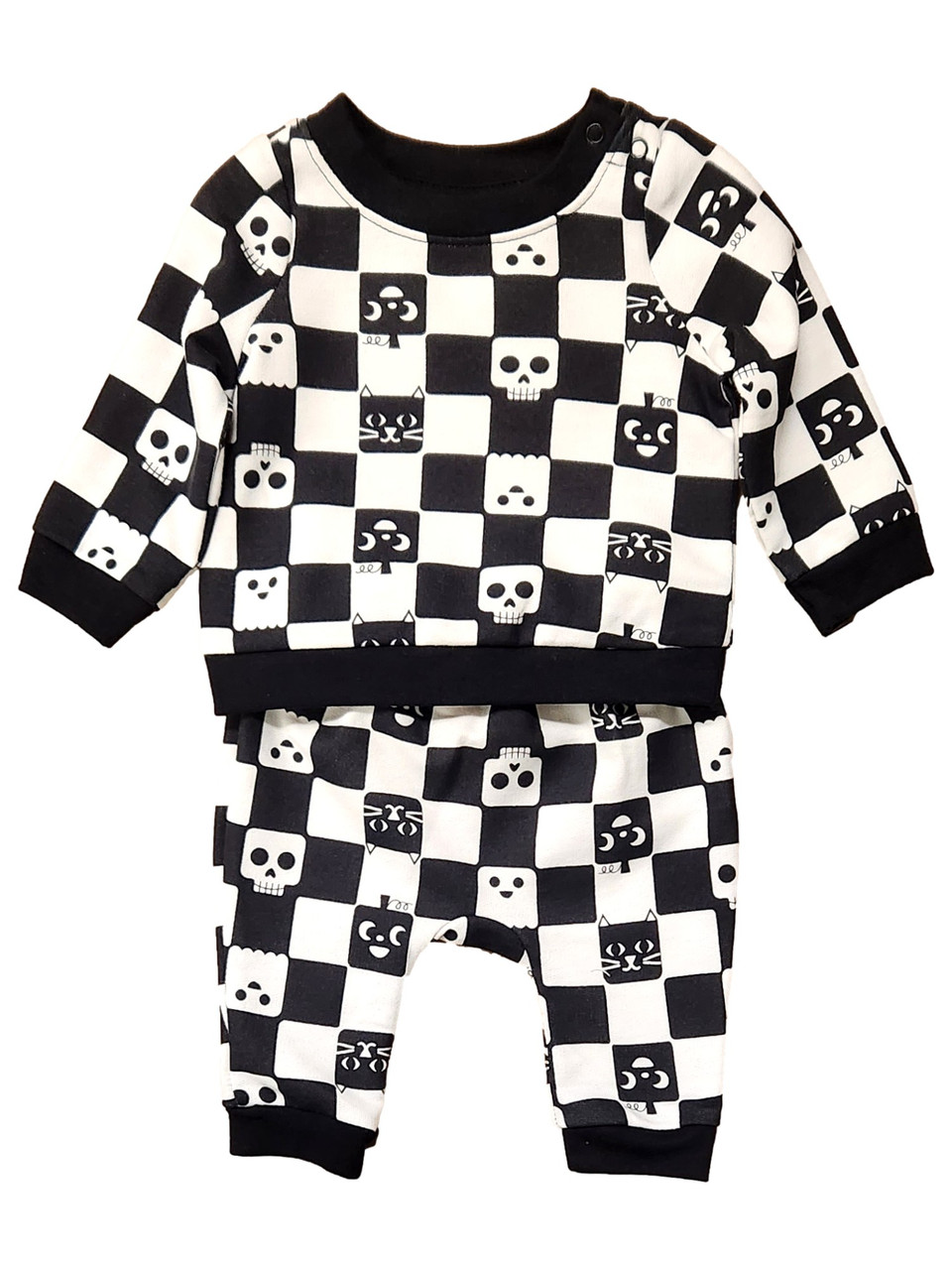- Infant Boys & Girls Black & White Checker Halloween Sweatshirt & Pants Set