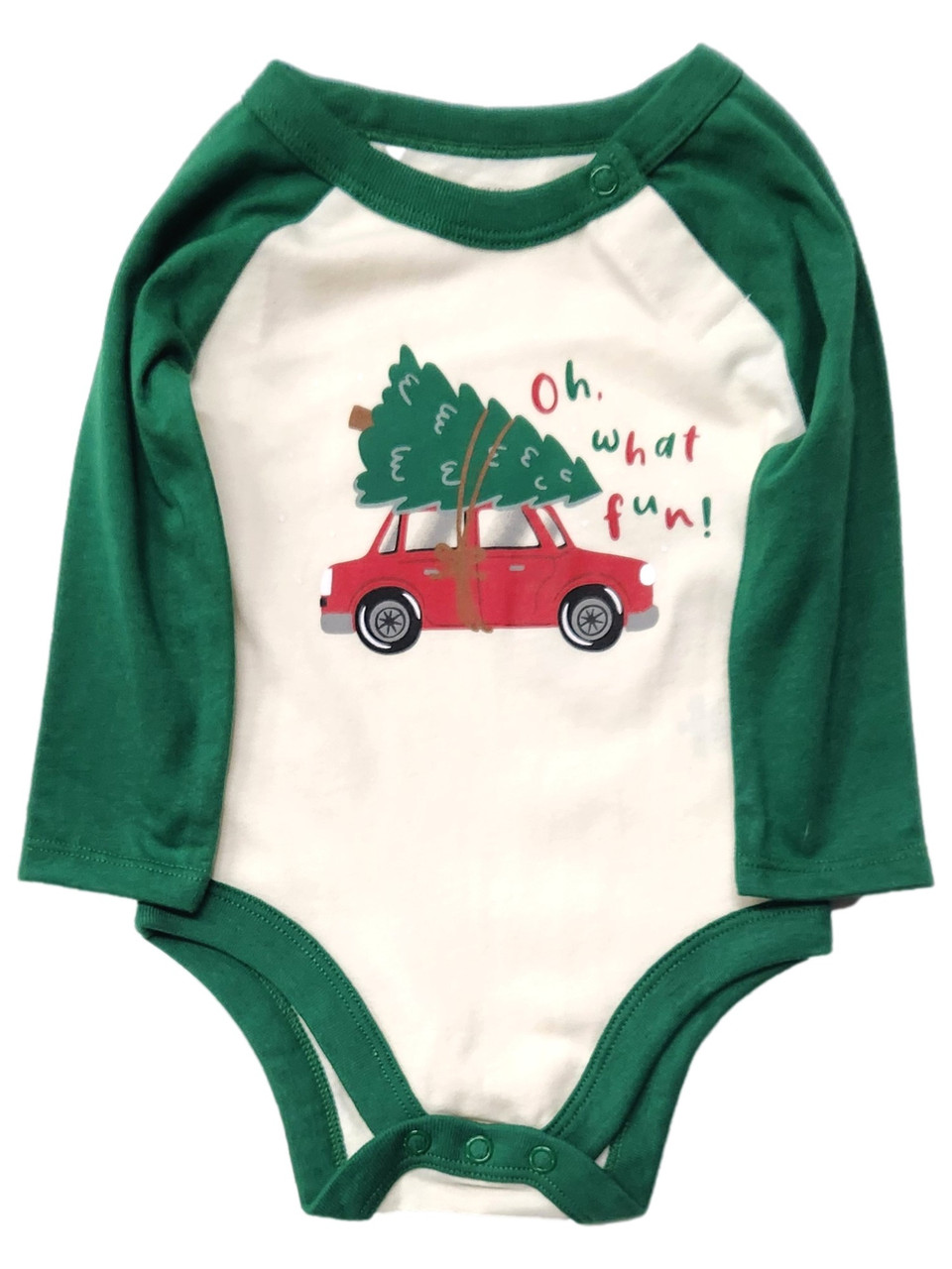 - Infant Boys Green Red Car & Christmas Tree "Oh What Fun" Bodysuit