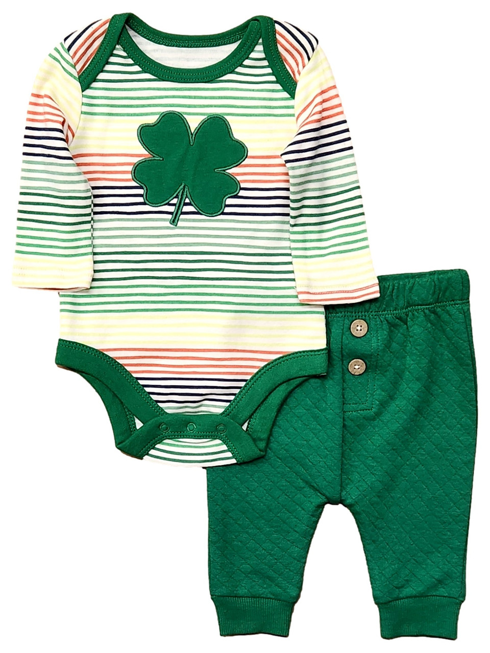 - Infant Boys Green Striped Clover Baby Outfit St Patricks Bodysuit & Pants