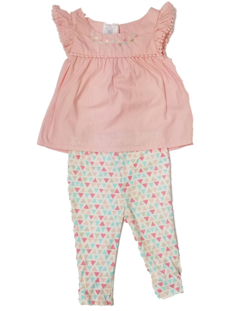 - Infant Girls Baby Pink Triangle Top & Matching Leggings Pants Outfit Set