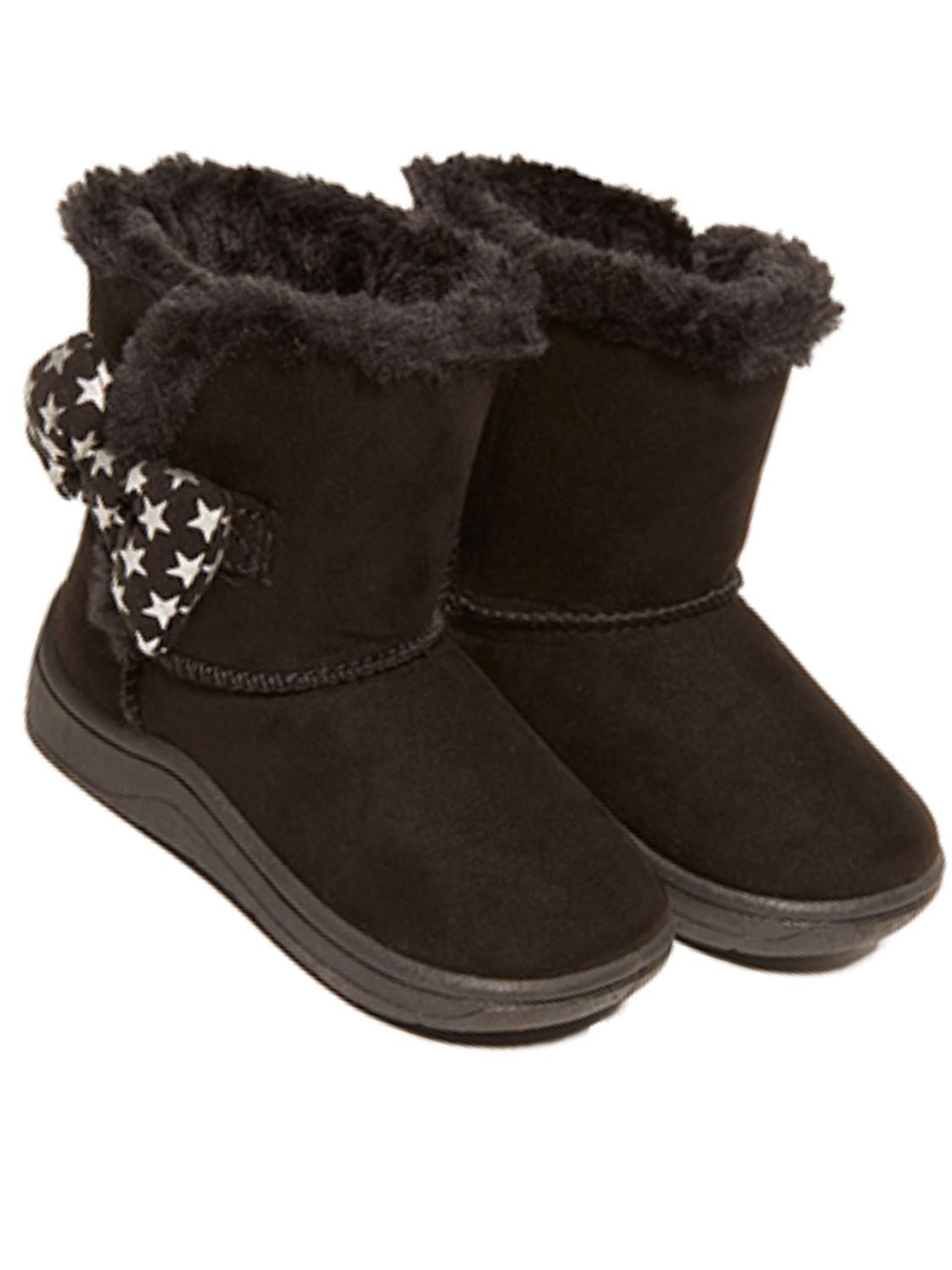 - Infant Girls Black & Silver Star Bow Shealing Boots Baby Shoes