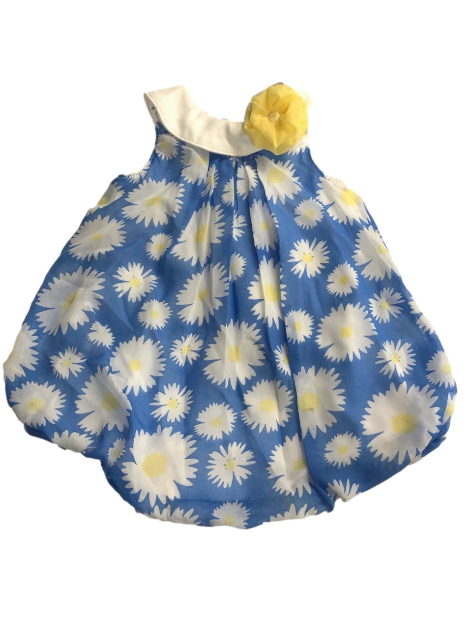 - Infant Girls Blue & White Daisy Flower Print Bubble Romper Baby Outfit