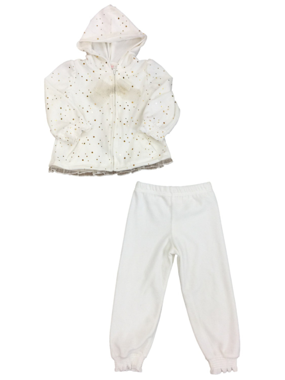 - Infant Girls Cream & Gold Sparkle Track Suit Velvet 2 Piece Sweatsuit