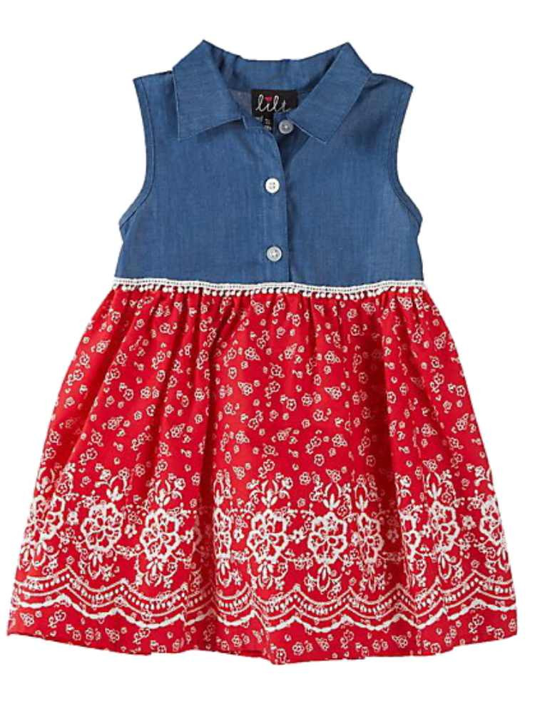 This pretty denim & red floral print baby dress is sure to be a favorite!