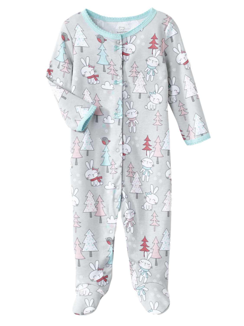 - Infant Girls Gray Cotton Bunny Rabbit Pajama Sleeper Christmas Sleep & Play