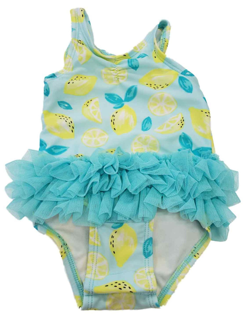 - Infant Girls Lemons Blue Tutu Ruffled Bow Back 1pc Swimming Swim Suit