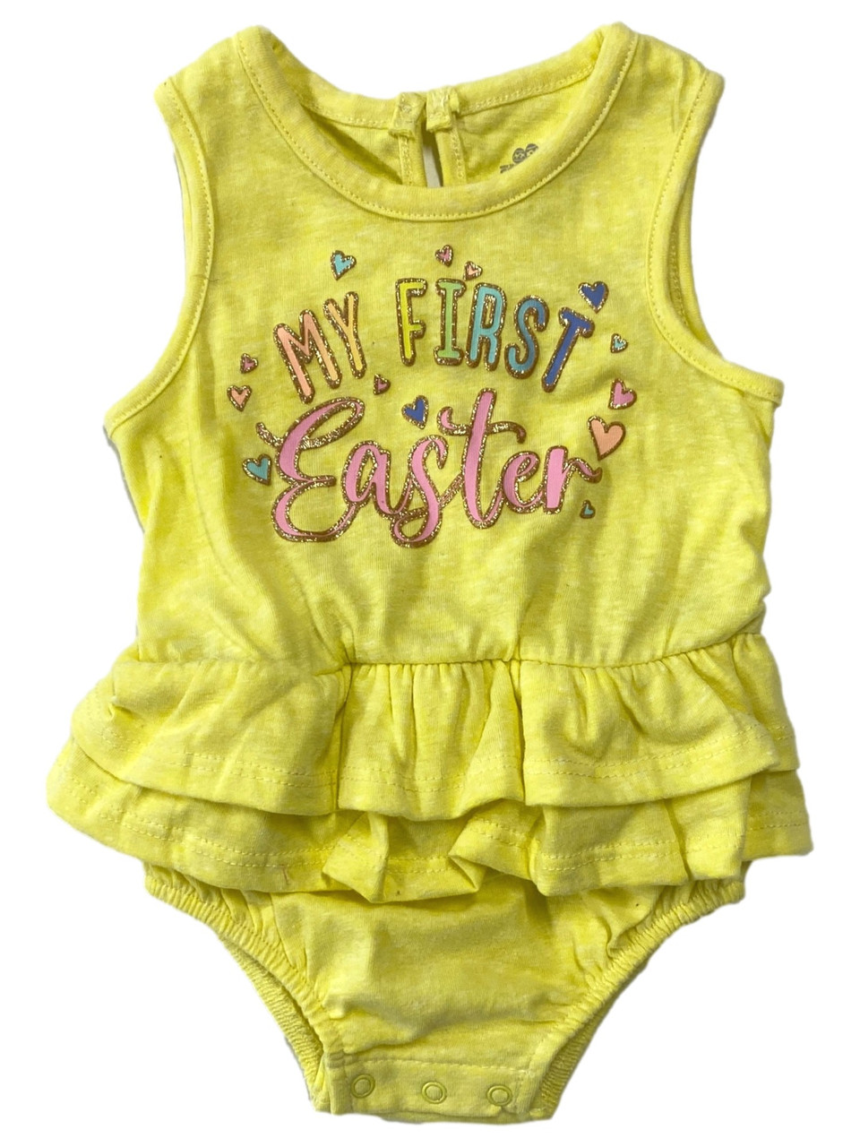 - Infant Girls My First Easter Yellow Double Ruffle Romper Bodysuit Outfit