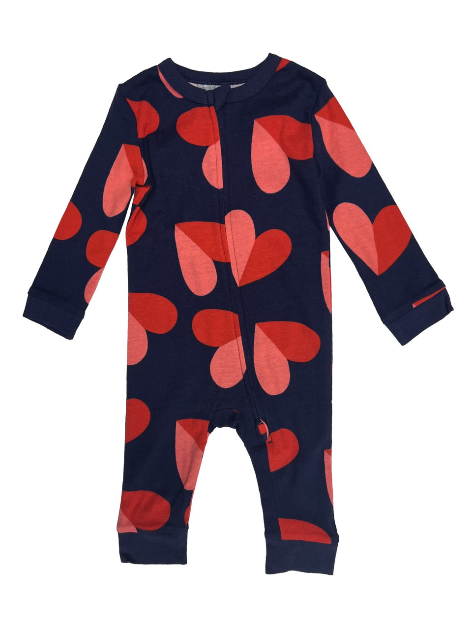 - Infant Girls One Piece Navy Red & Pink Heart Valentines Zip Sleeper Pajamas