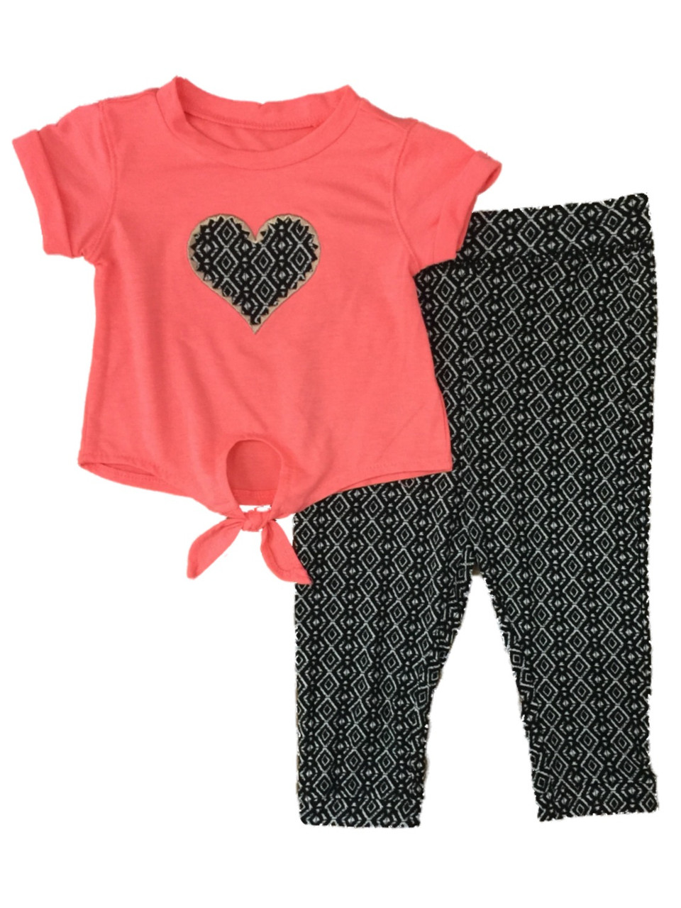 This cute baby girl's orange & black heart themed shirt & pants set is sure to be a favorite!
