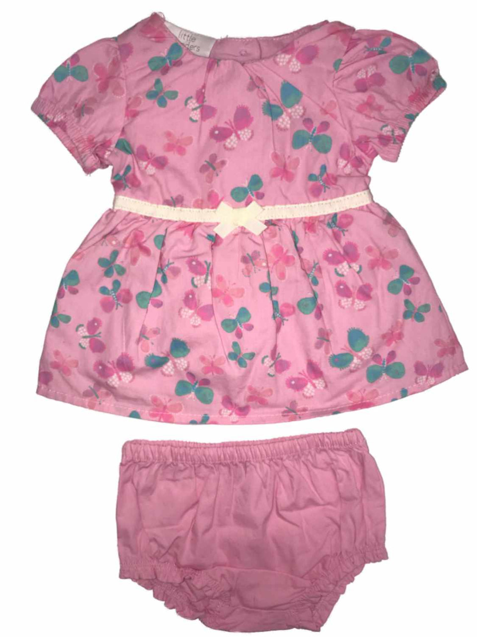 - Infant Girls Pink Butterfly Flared Baby Dress Bow Front & Diaper Cover Set