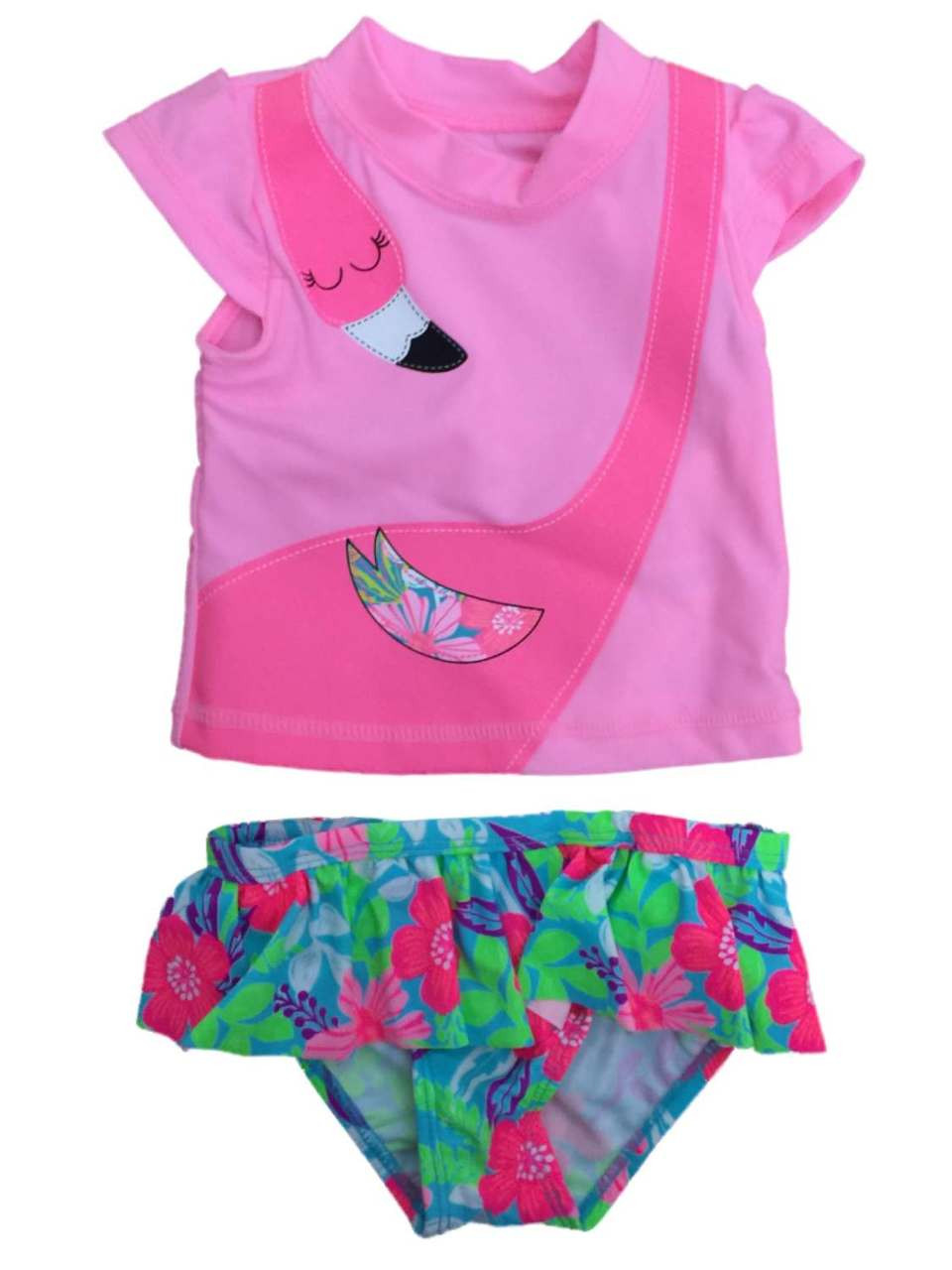 - Infant Girls Pink Flamingo Floral 2 Pc Rashguard Swimming & Bathing Suit
