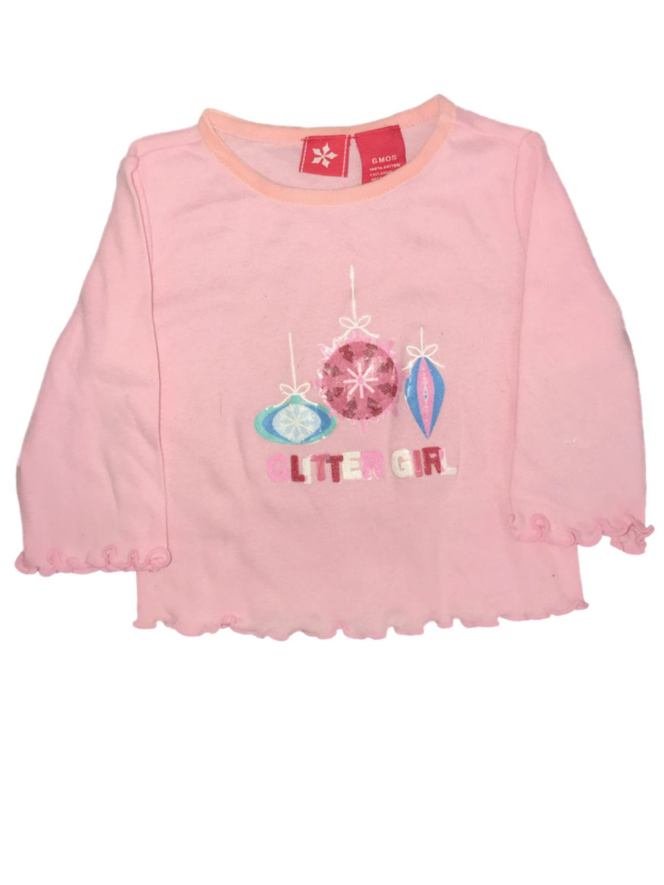 - Infant Girls Pink Ornament Glitter Christmas Long Sleeve Shirt Holiday Tee 6M