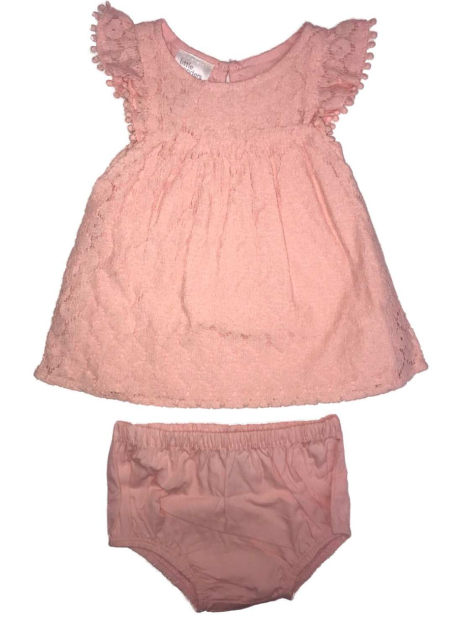 - Infant Girls Pink Sleeveless Lace Summer Baby Dress & Diaper Cover Set
