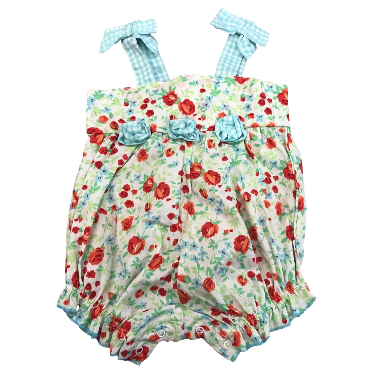 - Infant Girls Red & Blue Floral Rose Print Romper One Piece Baby Outfit 3 Months