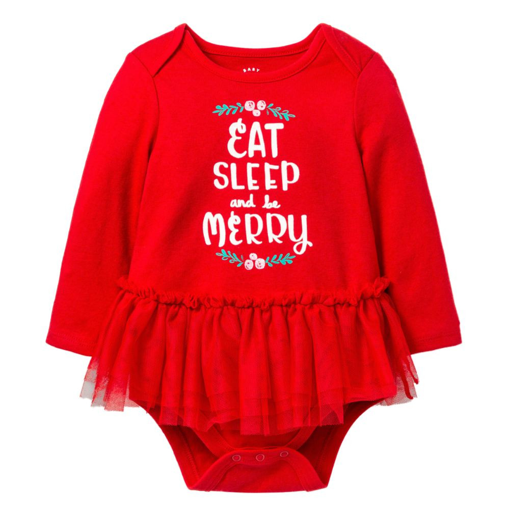 - Infant Girls Red Eat Sleep & Be Merry Tutu Bodysuit Chrismtas Holiday Outfit