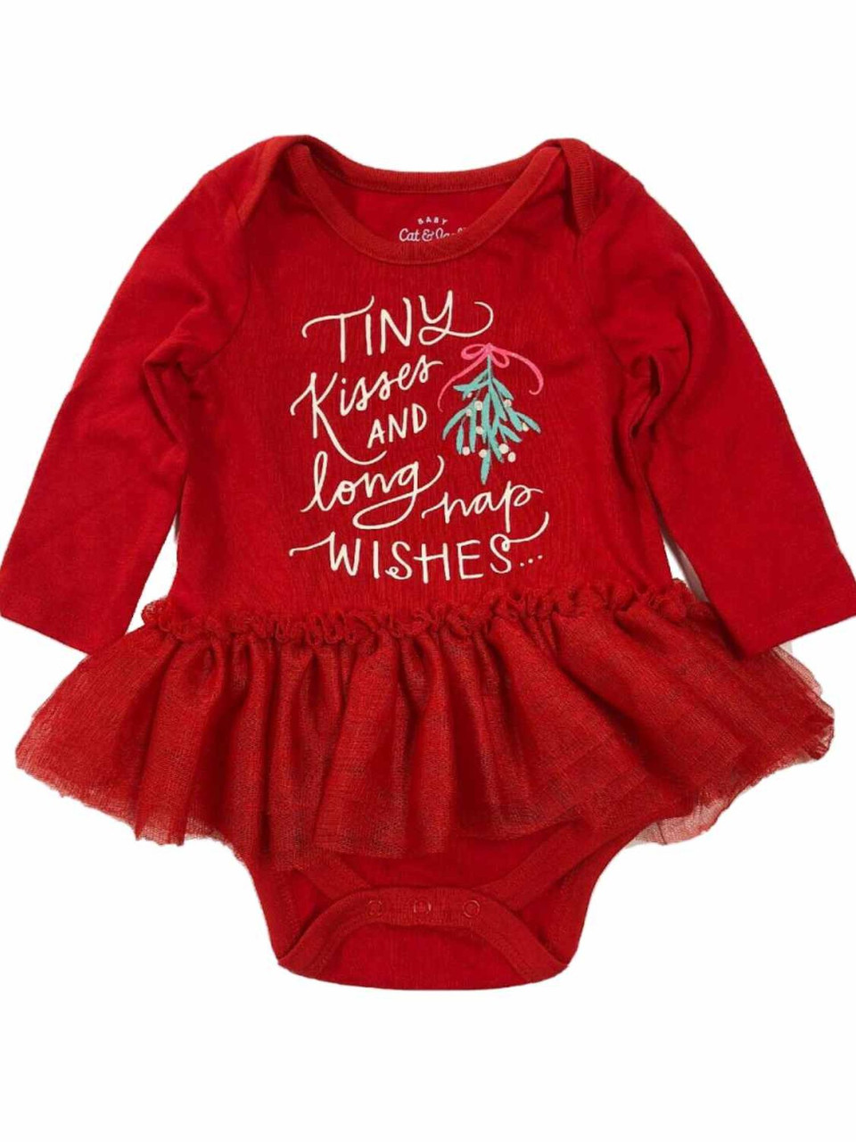 - Infant Girls Red Tiny Kisses & Long Nap Wishes Christmas Tutu Bodysuit Dress