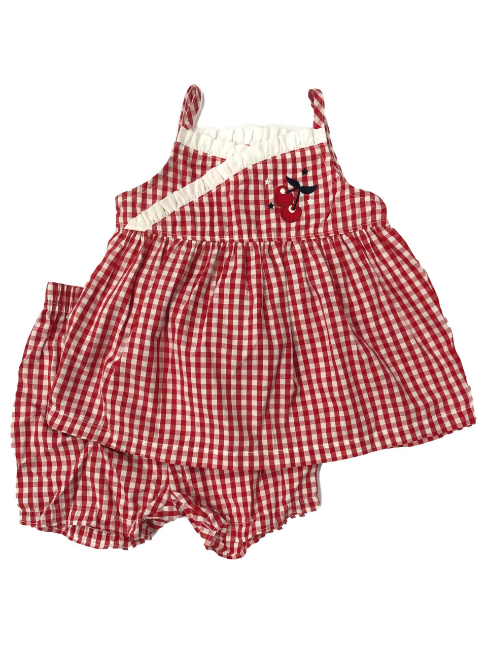 - Infant Girls Red & White Gingham Cherry Patriotic Sun Dress Sundress Outfit 6m
