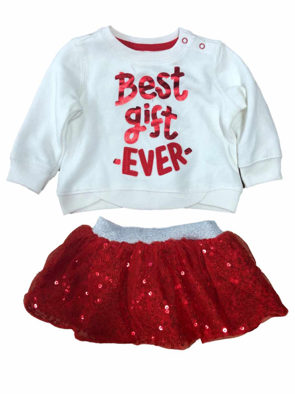 - Infant Girls Sequin Best Gift Ever Christmas Baby Outfit Sweatshirt & Skort