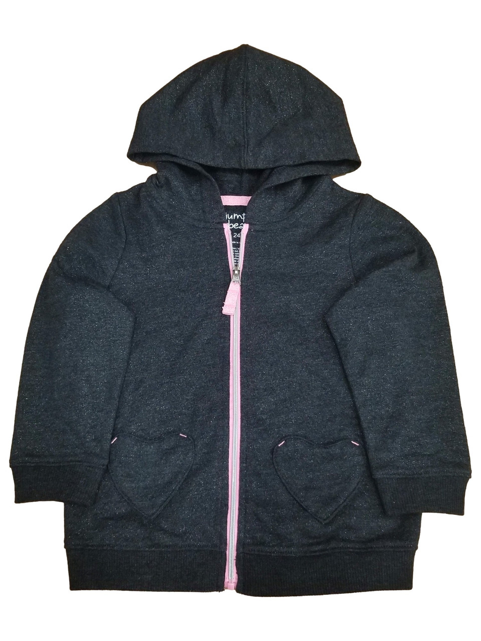- Infant Girls Sparkly Charcoal Gray Zip Up Hoodie Sweatshirt w/ Heart Pockets