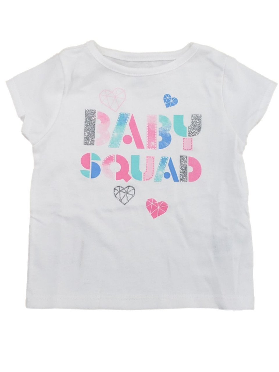 - Infant Girls White Baby Squad Glitter Sparkle Pink Blue Hearts Tee T Shirt
