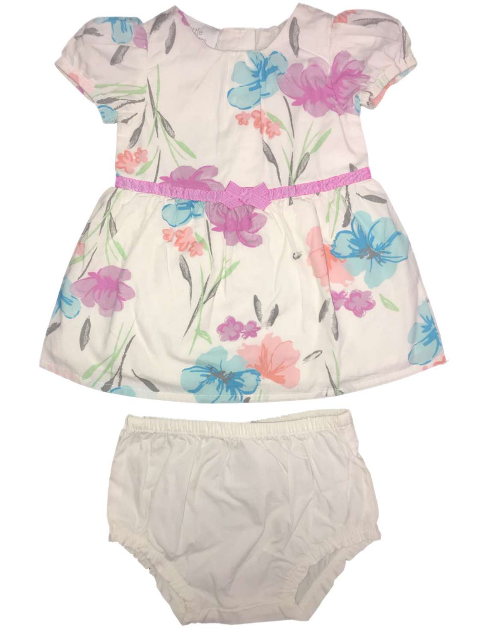 - Infant Girls White Flower Flared Baby Dress Floral Bow Front & Diaper Cover