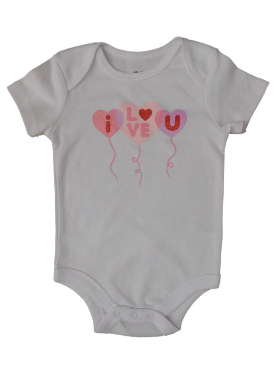 This adorable baby girl's white "I love you" Valentine's day bodysuit is sure to be a favorite!