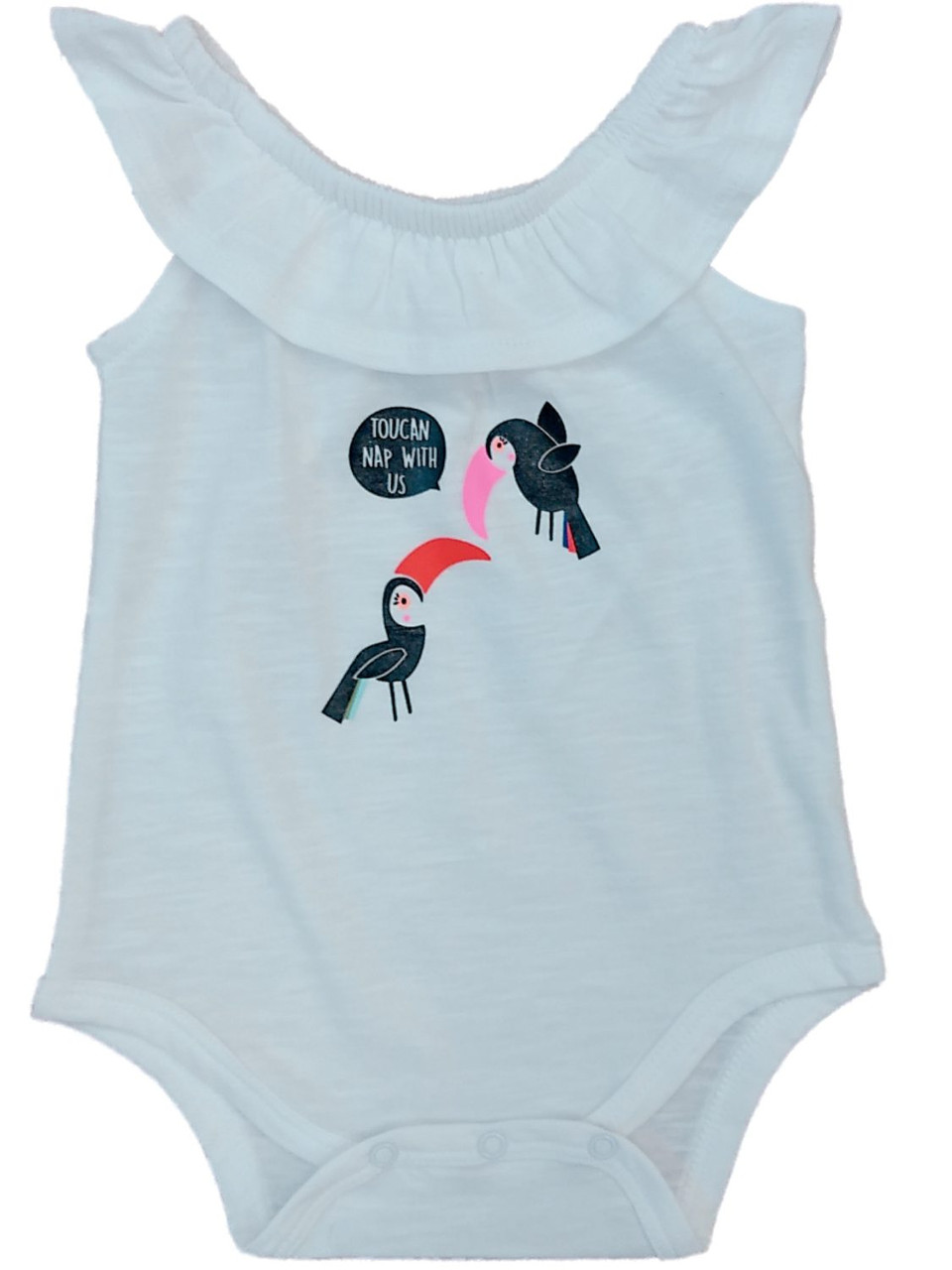 - Infant Girls White Ruffle Toucan Nap With Us Bodysuit Baby Bird Shirt