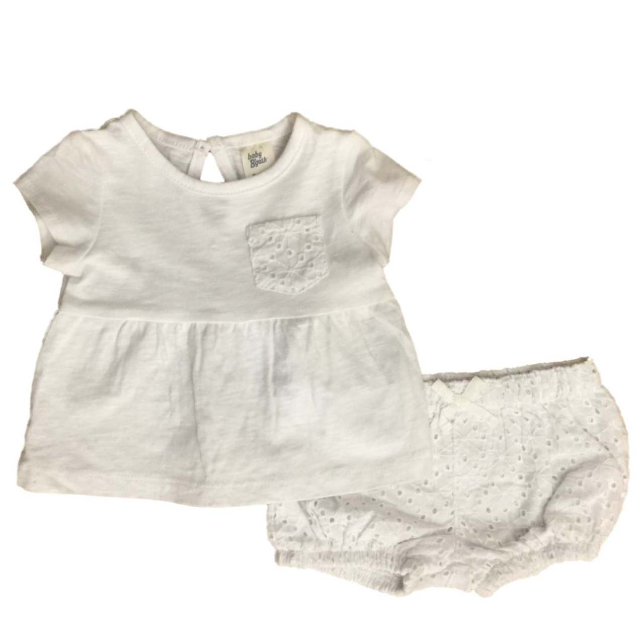 - Infant Girls White Tee Shirt Eyelet Pattern Back & Bottom 2 Piece Outfit