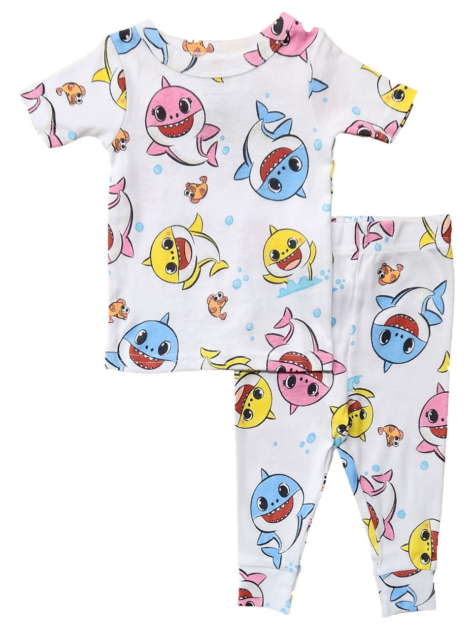 - Infant & Toddler Boys Baby Shark Snug Fit White 2 Piece Pajama Set